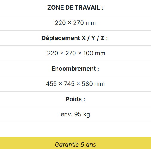 La transmission est assurée par trois vis à bille ø12mm au pas de 4mm. Les moteurs sont des pas à pas de taille Nema23 3.0A.